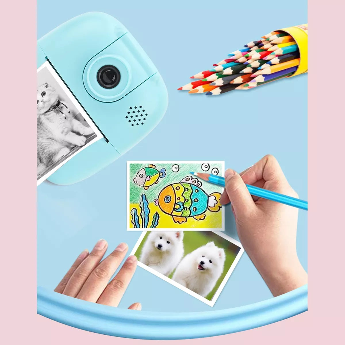 Impresión instantánea sin tinta: la cámara de impresión instantánea adopta la tecnología de impresión térmica que permite a los niños tomar fotos/videos e imprimir fotos en segundos para colorear. Puede inspirar a los niños a tener más imaginación.