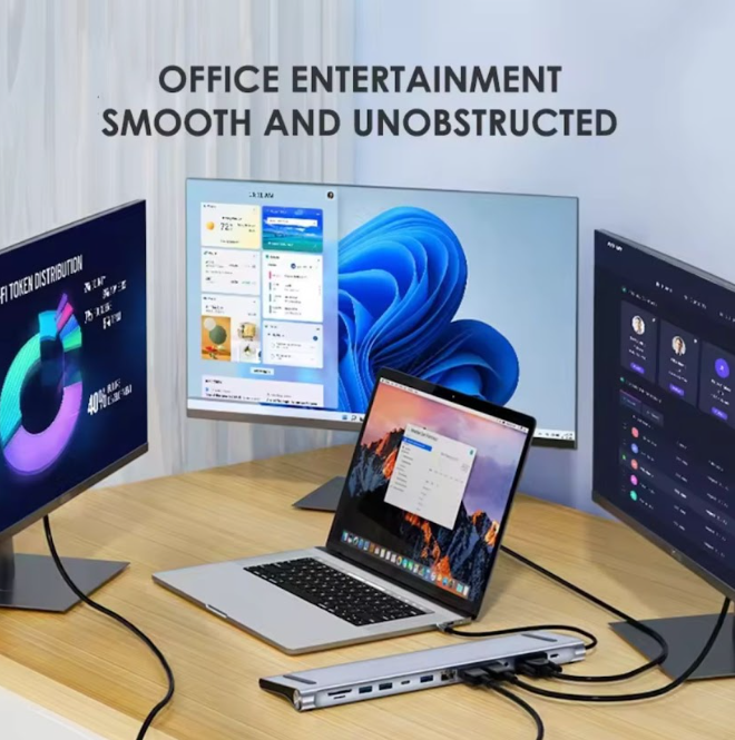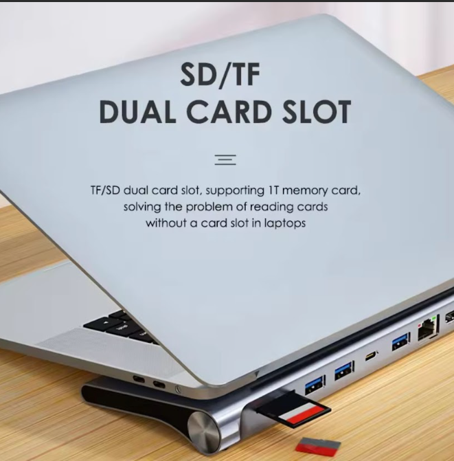 Gran cantidad de puertos: Con 12 puertos, puedes conectar múltiples dispositivos simultáneamente, como monitores, memorias USB, teclados, ratones, tarjetas SD, lectores de tarjetas, y más, todo en un solo accesorio