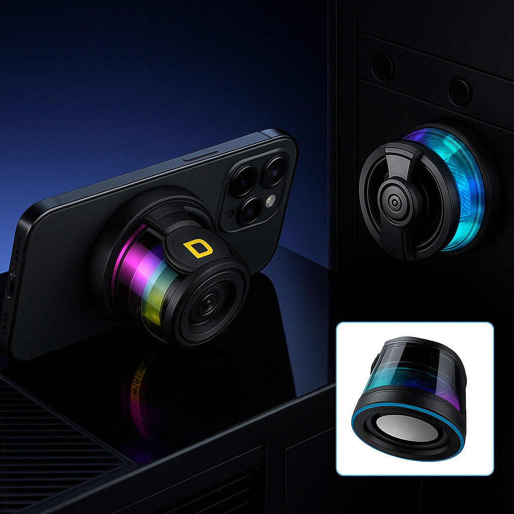 El Parlante Magnético Magnetic te ofrece sonido potente, luz RGB y soporte integrado en un solo dispositivo.